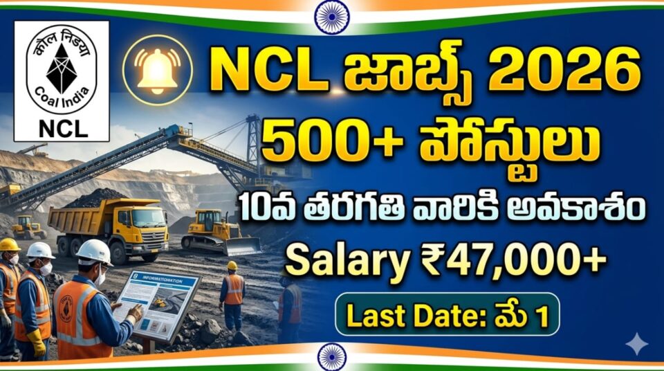 మీరు 10వ తరగతి / నర్సింగ్ / డిప్లొమా పూర్తి చేసి ఉంటే, ఇది మంచి అవకాశం. NCL Recruitment 2026 ద్వారా ప్రభుత్వ ఉద్యోగం పొందే అవకాశం కోల్పోకండి.